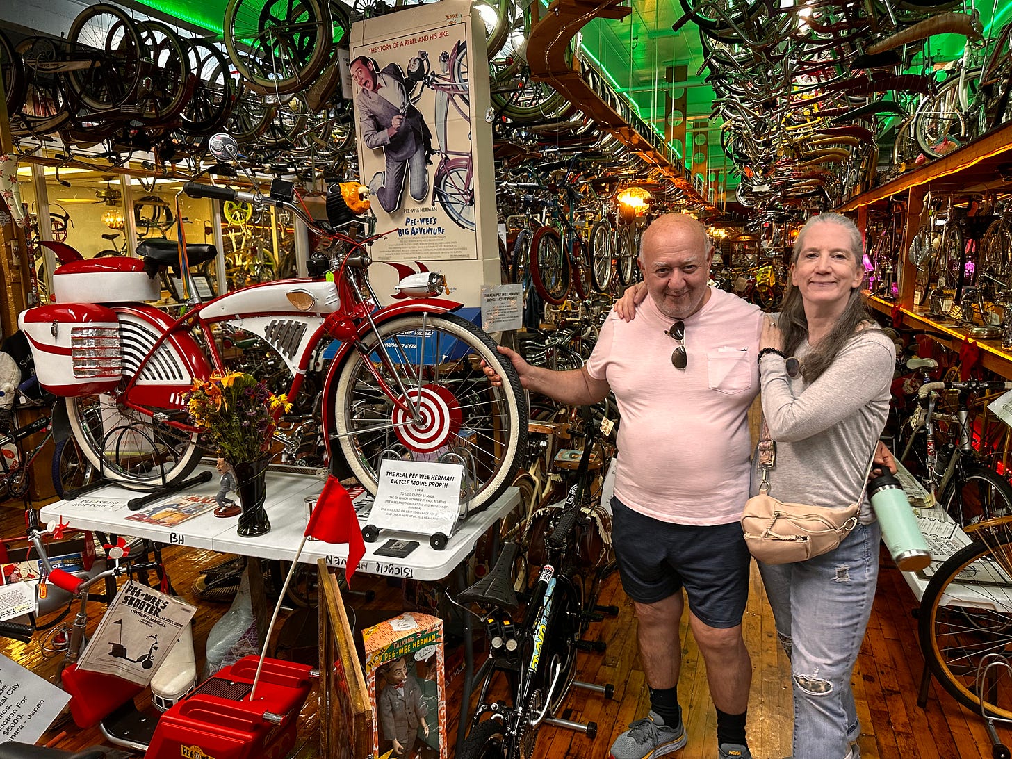 Pee-Wee Herman’s bike, from his movie, “Pee-Wee’s Great Adventure,” part of the amazing collection at Bicycle Heaven on Pittsburgh’s North Side. So what are you waiting for? Get on your bike. Go!